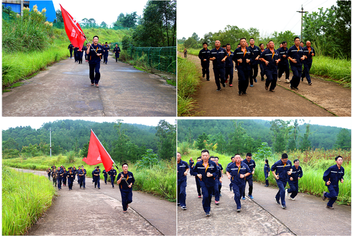 在集體熱身活動(dòng)后,長跑開始!由手持高高飄揚(yáng)旗幟的領(lǐng)跑員領(lǐng)跑,總經(jīng)理嚴(yán)曦親自率領(lǐng)班子成員,始終奔跑在前,整齊的長跑方隊(duì)威武雄壯,緊跟其后,響亮的“自強(qiáng)不息,艱苦奮斗!勤修實(shí)干,苦練內(nèi)功!”口號(hào)響徹鐵佛山谷,極具震撼力,給人以無窮的信心和動(dòng)力!